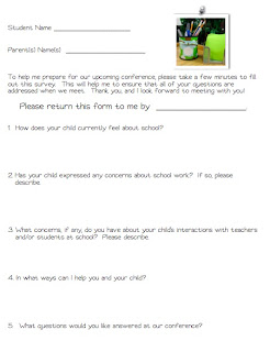 It is always nice to have a plan in place before meeting with parents to discuss their child. One thing that helps me with planning is sending home this conference survey before we meet. It gives me information about what the parents are thinking, and it lets parents know that I am interested in their perspective. Come over to my blog to grab this freebie!